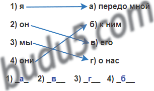 Соедини местоимение и его форму (проведи стрелки, а затем укажи рядом с цифрой нужную букву).