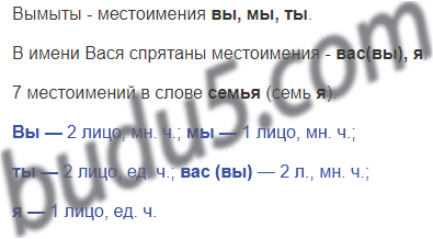 Напиши ответы-отгадки в виде отдельных местоимений (или их формы) и укажи лицо и число.