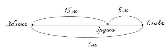 23. На участке вдоль одной стороны забора посадили яблоню, грушу и сливу. От яблони до груши 15 м, а от груши до сливы 6 м. Сколько может быть метров от яблони до сливы?