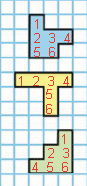 Фигуры состоят из одинакового количества клеточек, по 6 клеточек каждая.