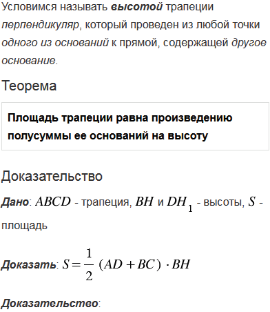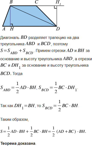 Сформулируйте и докажите теорему о вычислении площади трапеции.