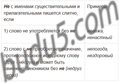 | 2) слово с не приобретает значение, противоположное исходному слову (друг - не́друг) и может быть заменено синонимом без не (недруг - враг) | ... |