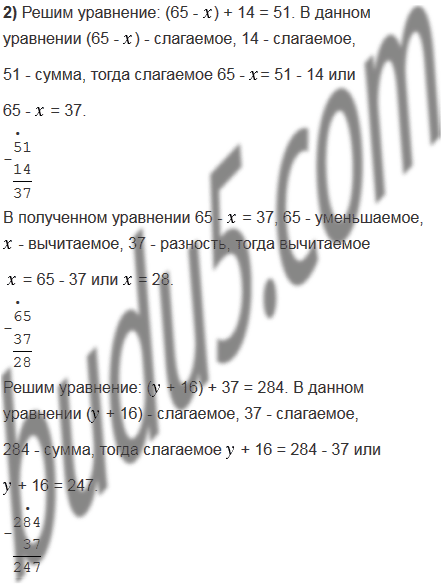 2) (65 - ) + 14 = 51 и ( + 16) + 37 = 284.