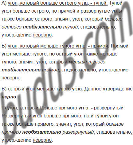 Б) угол, который меньше тупого угла, - прямой
