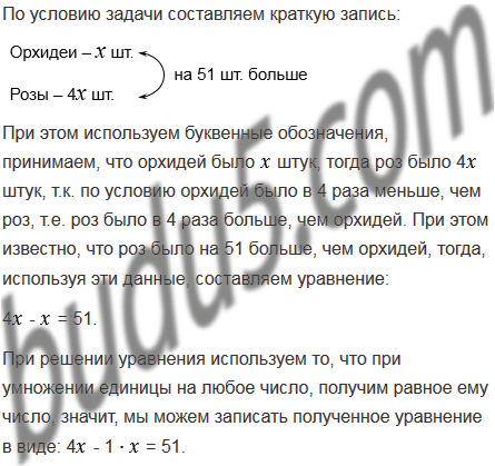 Валентин подарил Виктории розы и орхидеи, причем орхидей было в 4 раза меньше, чем роз. Сколько роз подарил Валентин, если известно, что их было на 51 больше, чем орхидей?