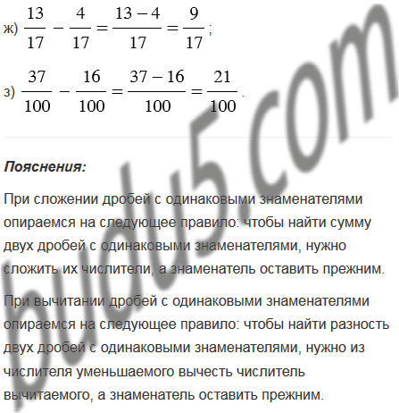 2. Сложение и вычитание дробей с одинаковыми знаменателями.