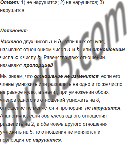 2) оба члена одного отношения разделить на 2, а оба члена другого отношения умножить на 5;
