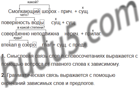 1. Установите смысловую связь слов в словосочетаниях, задав вопрос от главного слова к зависимому.