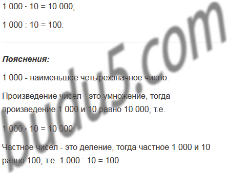 Найдите произведение наименьшего четырехзначного числа и десяти. Найдите частное этих же чисел.