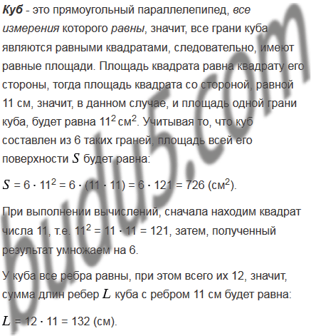 Найдите площадь поверхности и сумму длин ребер куба, ребро которого 11 см.