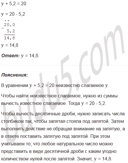 Решите уравнение + 5,2 = 20.