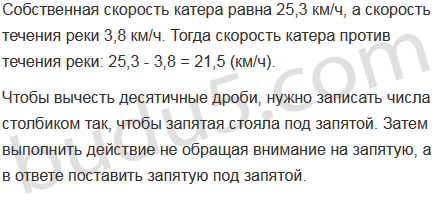 Собственная скорость катера равна 25,3 км/ч, а скорость течения реки 3,8 км/ч. Найдите скорость катера против течения реки.