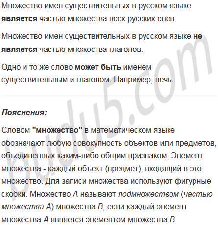 Является ли множество имен существительных в русском языке частью множества всех русских слов? Является ли оно частью множества глаголов? Может ли одно и то же слово быть именем существительным и глаголом?