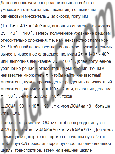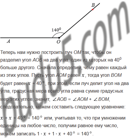 Постройте угол АОВ в 1400 и проведите луч ОМ так, чтобы он разделил угол АОВ на два угла, один из которых на 400 больше другого.