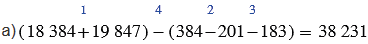 а) (18 384 + 19 847) - (384 - 201 -183);