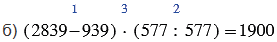 б) (2839 - 939) • (577 : 577).