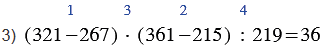 Синие числа, стоящие сверху, показывают в каком порядке нужно выполнять действия.