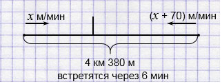 2) Два катера, двигаясь навстречу друг другу, должны встретиться через 6 мин. Сейчас расстояние между ними 4 км 380 м. Найдите скорости этих катеров, если известно, что скорость первого на 70 м/мин меньше скорости второго.